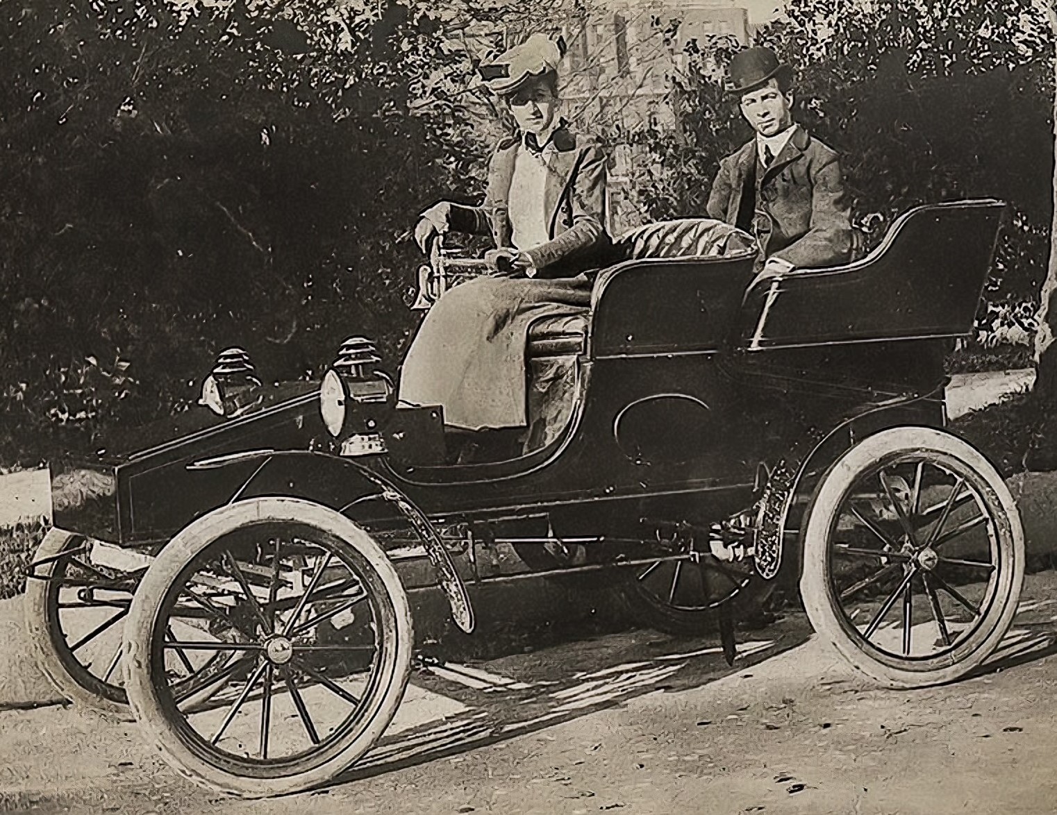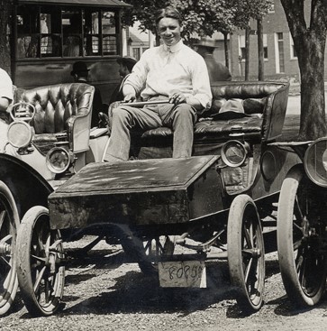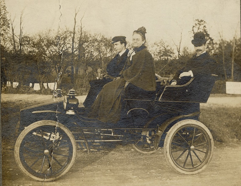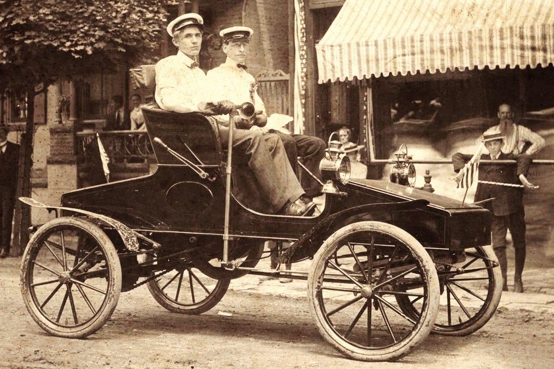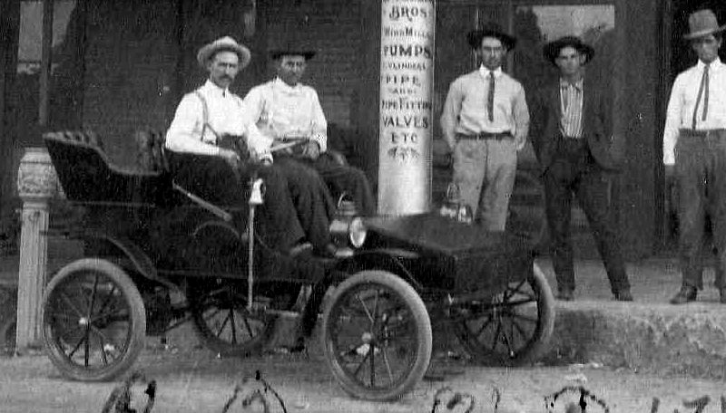 Reported to be the first car in Abilene, John R. Spaulding, driving, W. H. Spaulding, passenger.