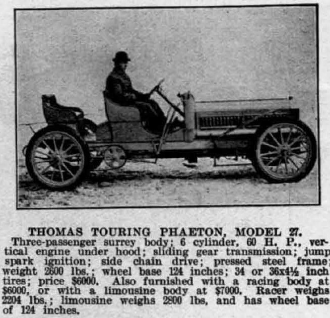 The development and production of this first-generation 6-cylinder Thomas is not completely clear.