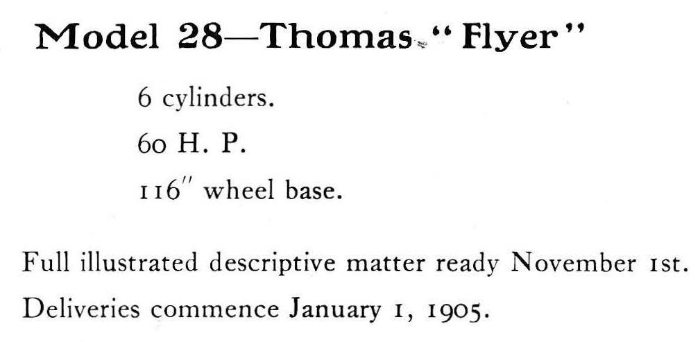 Some time before Nov. 1, Thomas put out an advance catalog that listed a 6-cylinder Model 28,
