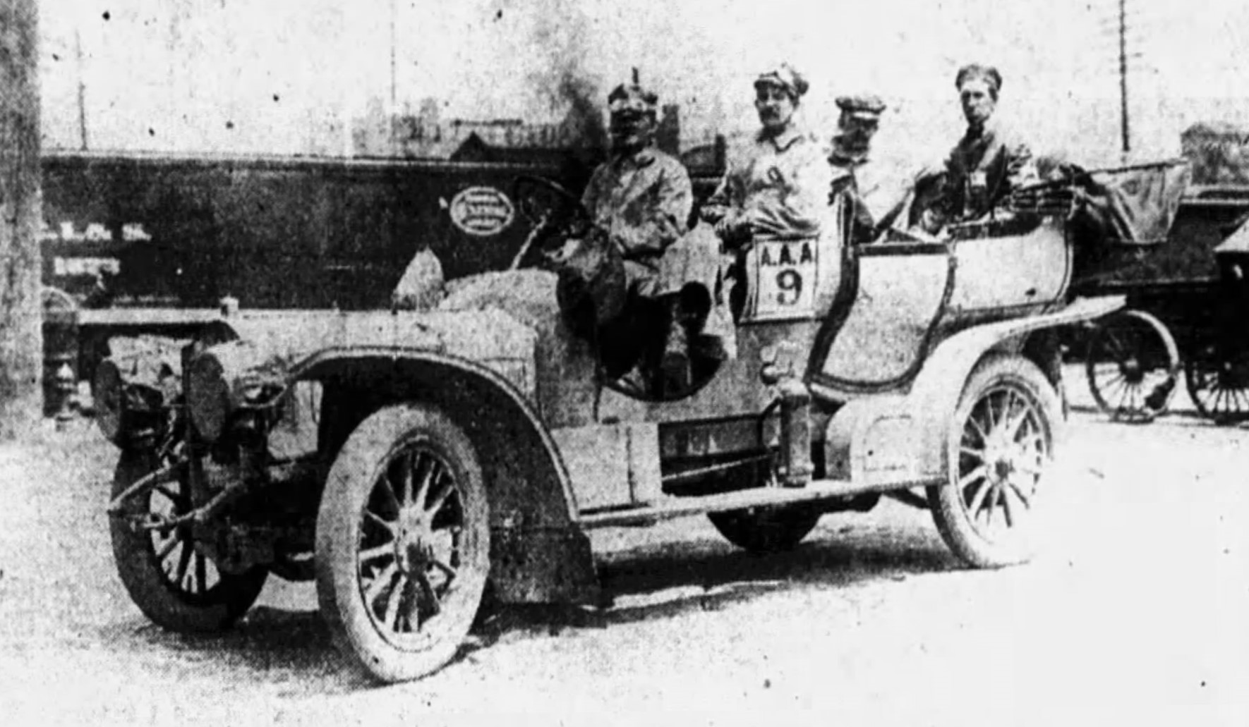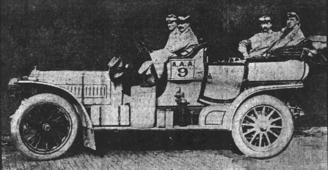 Passengers were mechanic Arthur Tuttleby and Edward Mussen of the Thomas factory.