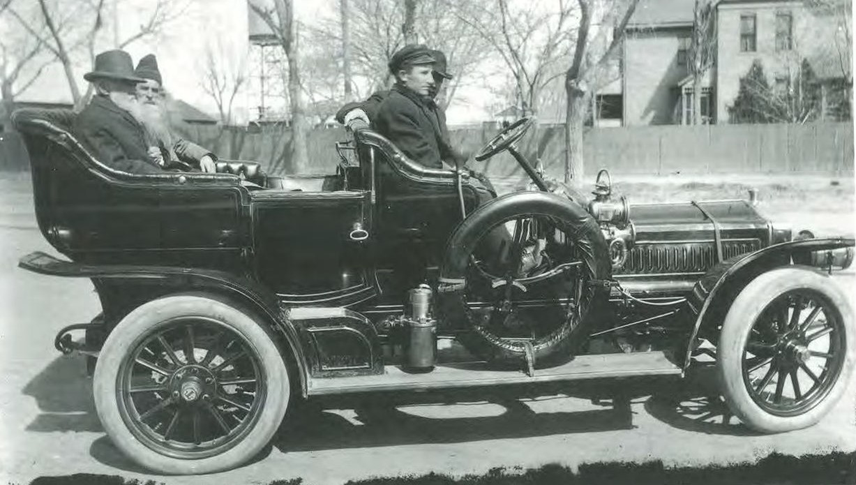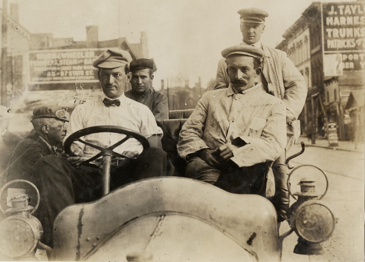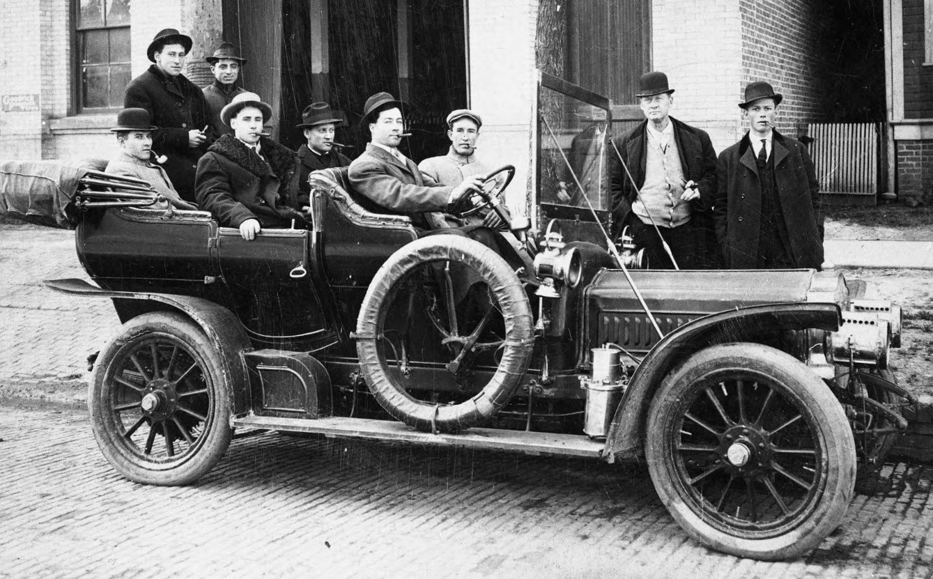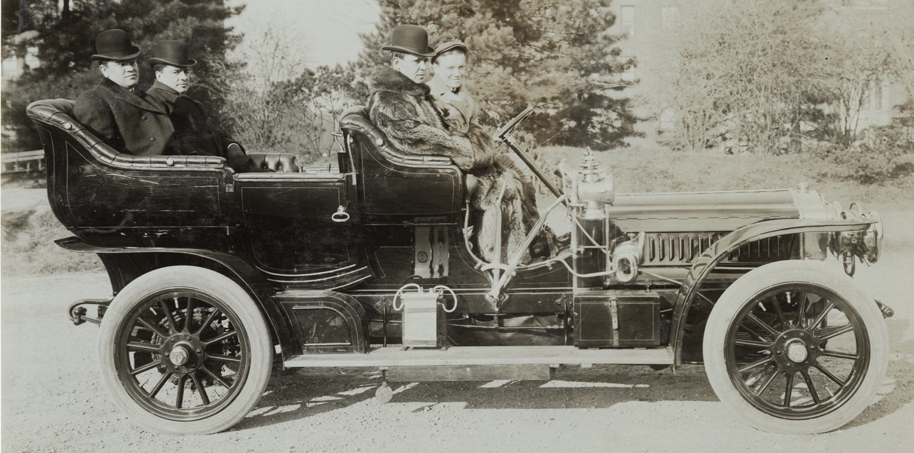 Left to right: front seat, George Salzman, Arthur Tuttleby; back seat, Edward Mussen, George M. Davis.