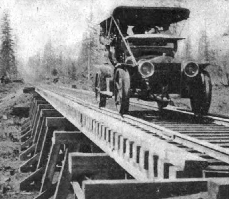 He got railroad wheels made for his Model 31, which he could swap onto the car in about a half hour.