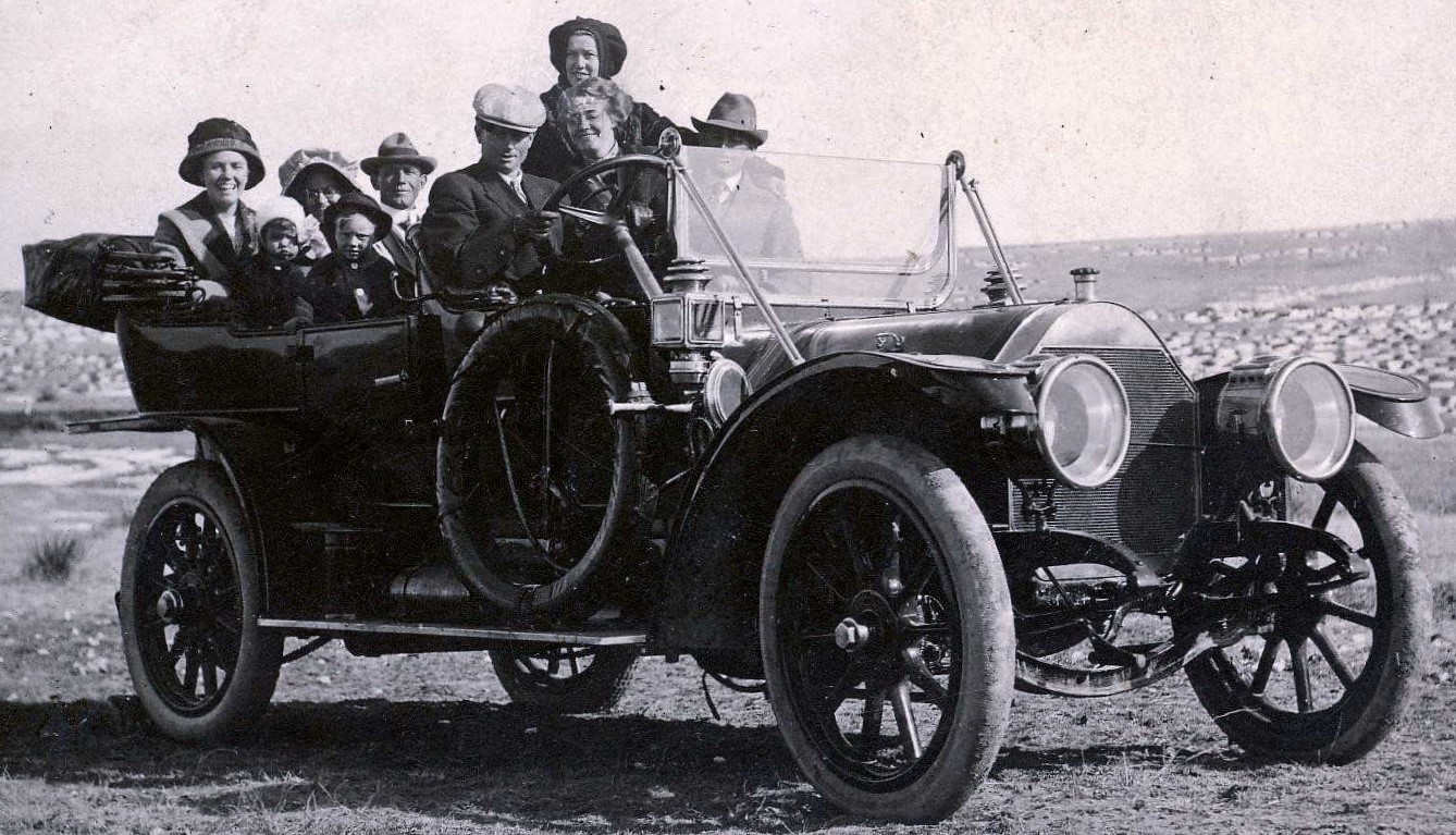 Distinctive features for 1910 are the curved, billed front fender,